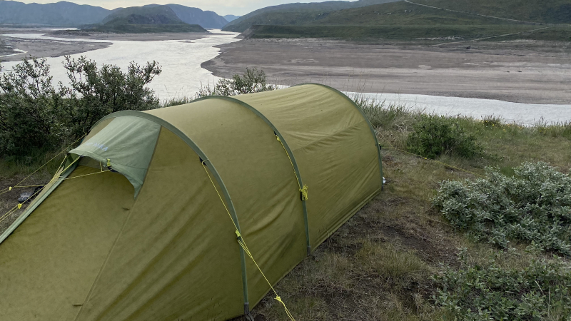 In Kangerlussuaq angekommen, wird uns ein Übernachtungsplatz am Fluss empfohlen. Der Campingplatz ist wohl sehr nass – auch hier hat es in den letzten Tagen viel geregnet. Jetzt scheint die Sonne.