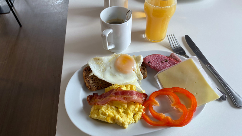 Ausgiebiges Frühstücksbüffet gibt es heute mit allem Drum und Dran.