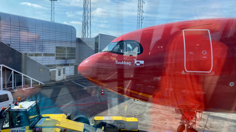 Es bleibt noch ein Moment, sich auf eine Bank zu legen, bevor es zum Checkin geht. Noch ein kleiner Bummel durch den Flughafen, ein letzter Kaffee, dänisches Gebäck und dann geht es schon zum Gate und unser Flieger hebt pünktlich ab Richtung Kangerlussuaq. Im Flugzeug wird auch noch geschlafen. Die Airline ist zu empfehlen: Zwei Softdrinks und noch ein leckeres Menü.