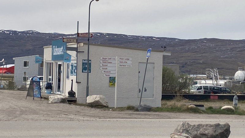 Auch das grönländische Büfett, das es jeden Sonntag gibt, ist ausgebucht. Es läuft … kann man sagen. Bei so viel Stress gibt es zumindest schon mal einen Hot Dog, um die Stimmung zu heben. Es gelingt zum Glück eine Inlandeistour für morgen zu buchen. In der Jugendherberge angekommen, richten wir unsere Betten im Vielbettzimmer ein, nehmen die ersehnte Dusche und schauen uns in der Umgebung um. Ein Restaurant oder eine Gaststätte gibt es in der Nähe nicht, aber einen kleinen Lebensmittelladen mit Imbiss. Da kehren wir ein.