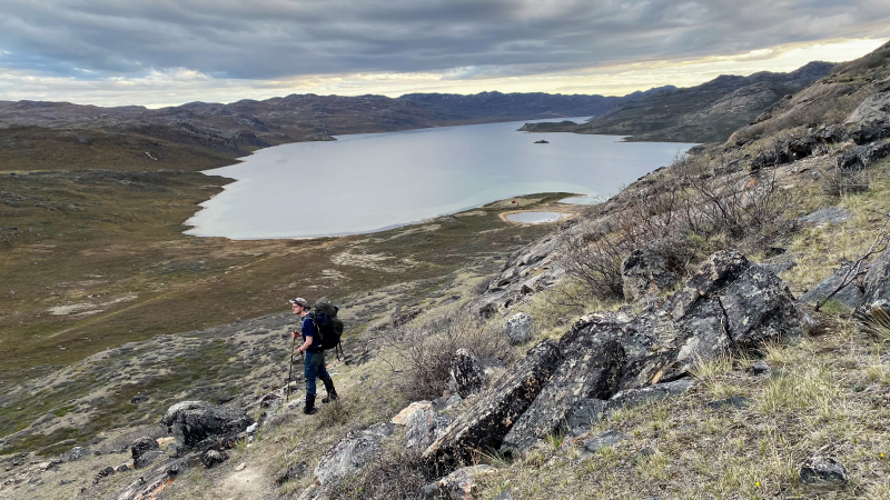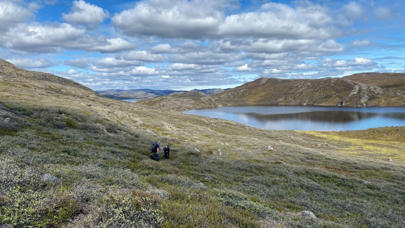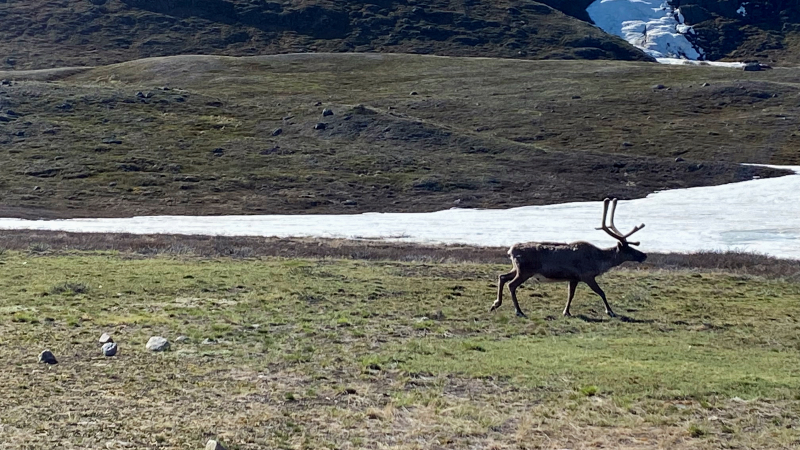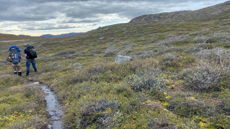 Die arktische Landschaft ist wundervoll. Die vielen Seen, die Ausblicke von den Höhen. Wir sind begeistert. Hintereinander sind wir auf dem Trampelpfad unterwegs.