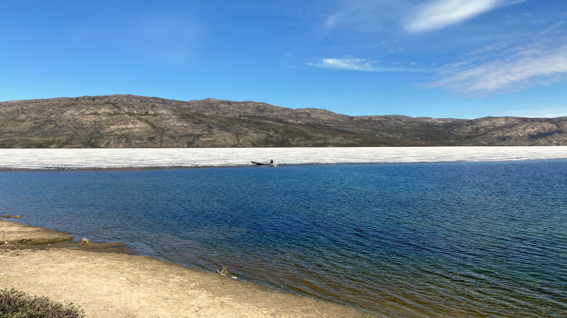 Die Sonne lacht wieder vom Himmel und es ist angenehm warm und das in Grönland. Entspannt gehen wir in den Tag. Es wurde länger geschlafen, sich am und im See gewaschen, gemütlich gefrühstückt und auch ein Waschtag eingelegt. Zwei Kanus lassen sich auftreiben, mit denen wir eine Kanutour bis zum Eisschild unternehmen mit Mittagspicknick.