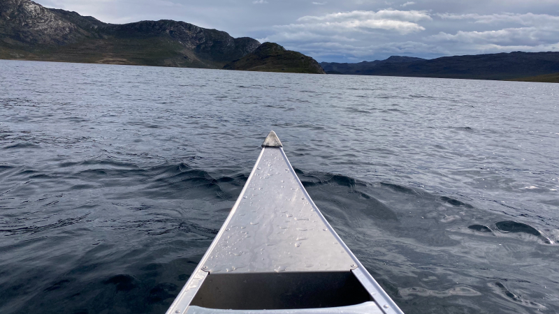Es gelingt heute etwas früher den Rückweg anzutreten. Es ist wirklich unser Rückweg zum Ausgangspunkt unserer Tour. Wir genießen die Zeit auf unserem Weg für Fotos und kleine Pausen. Die Wiesen sind noch feuchter als gestern durch den Regen in der Nacht. Bald sind die Füße wieder nass. Am See angekommen, geht’s wieder in die Kanus. Die Eisschollen sind seit gestern erheblich geschmolzen und der Wind heute ist hilfreich, uns eine Schneise zu schaffen, durch die wir direkt bis zum Kanu-Center paddeln können. Eigentlich soll hier nur Pause gemacht werden, doch das Wetter wird schlechter und wir bequem – wir bleiben hier. War die Entscheidung richtig? Mittlerweile platzt die Hütte aus allen Nähten. Eine riesengroße Gruppe Iren ist eingetroffen, drei Grönländerinnen, ein Este und Dänen .