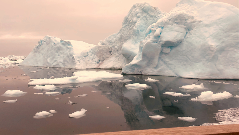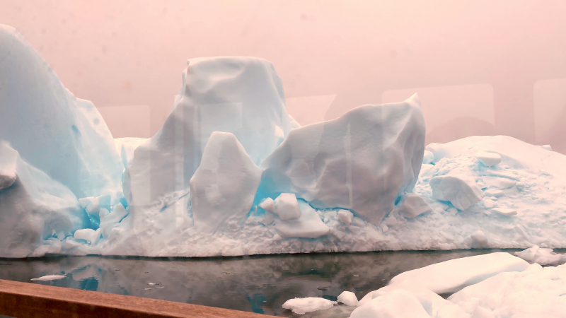 Was für ein An- und Ausblick. Es wird fotografiert und fotografiert. Ein Traum! Jeder Eisberg sieht anders aus. Es wird andächtig auf das Meer geschaut – ganz still. Es knackt und rummst. Ein bisschen wie Sylvester.