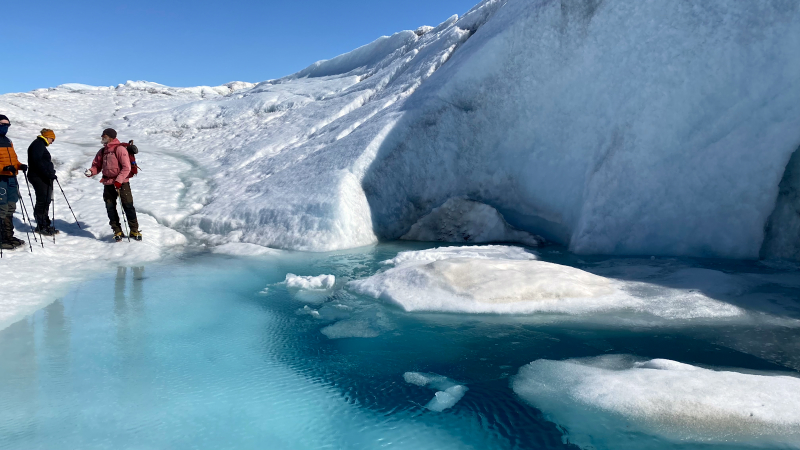 Anschließend wird noch eine sehr schöne Wanderung zu einem anderen See unternommen. Obwohl wir zu Beginn über ein Eisfeld gehen mussten, ist es so warm, dass wir am Ziel in den eiskalten See springen bevor der Rückweg beginnt.