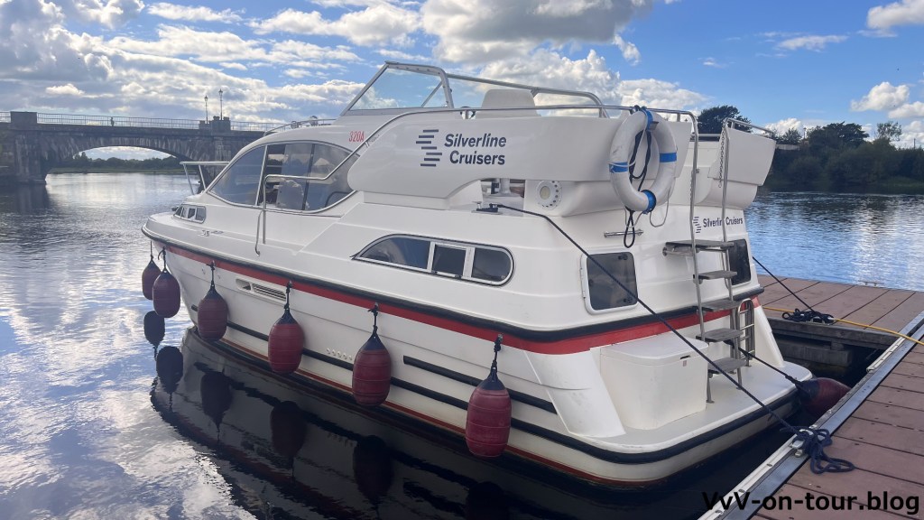 Am frühen Nachmittag steht unser Boot in Banagher bereit. Wir haben bei dem Bootsvermieter Silverline gebucht. Das hatten wir über ein spezialisiertes deutsches Reisebüro gemacht, dass wir sehr empfehlen können. Es hat uns bei der Vorbereitung sehr geholfen.
