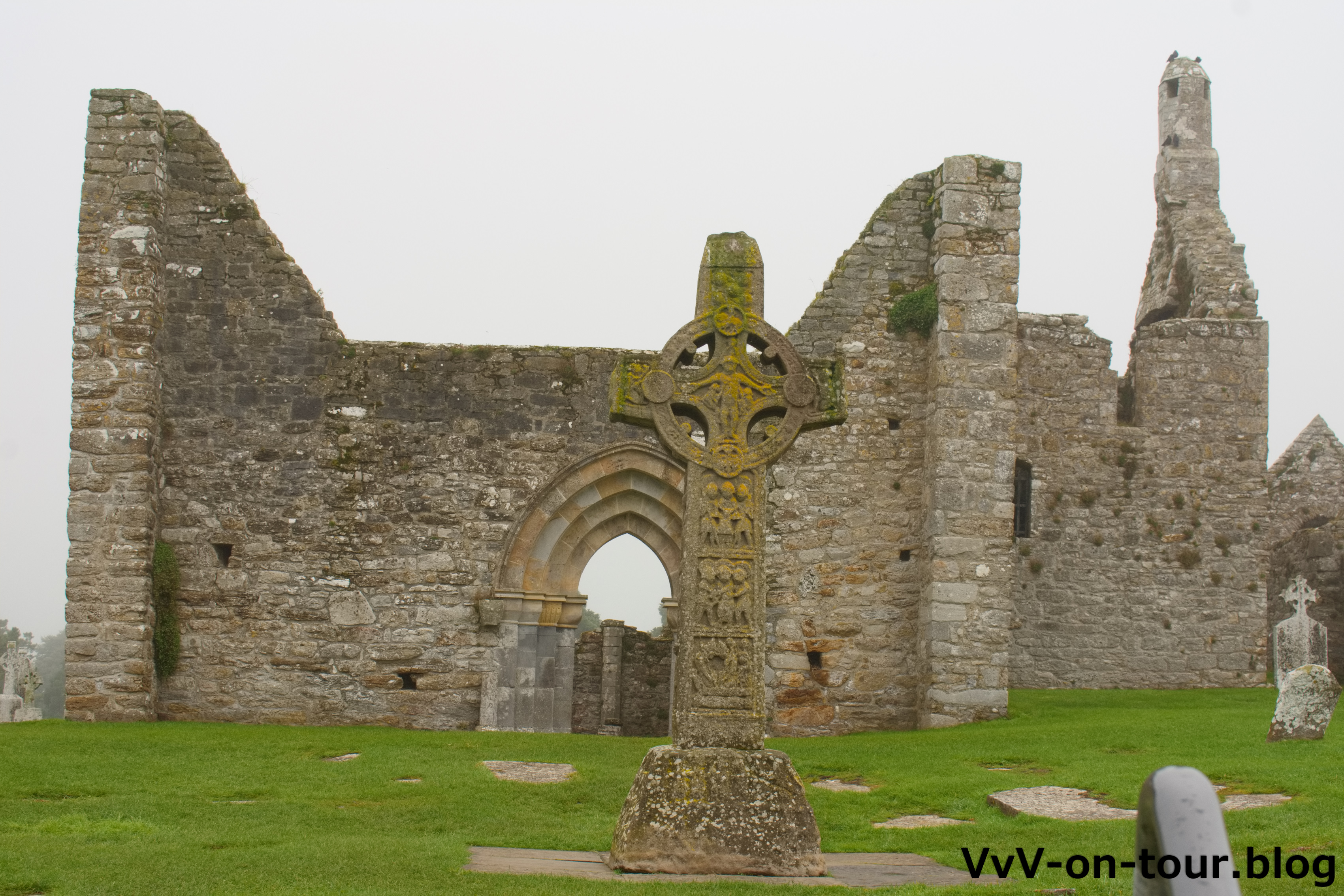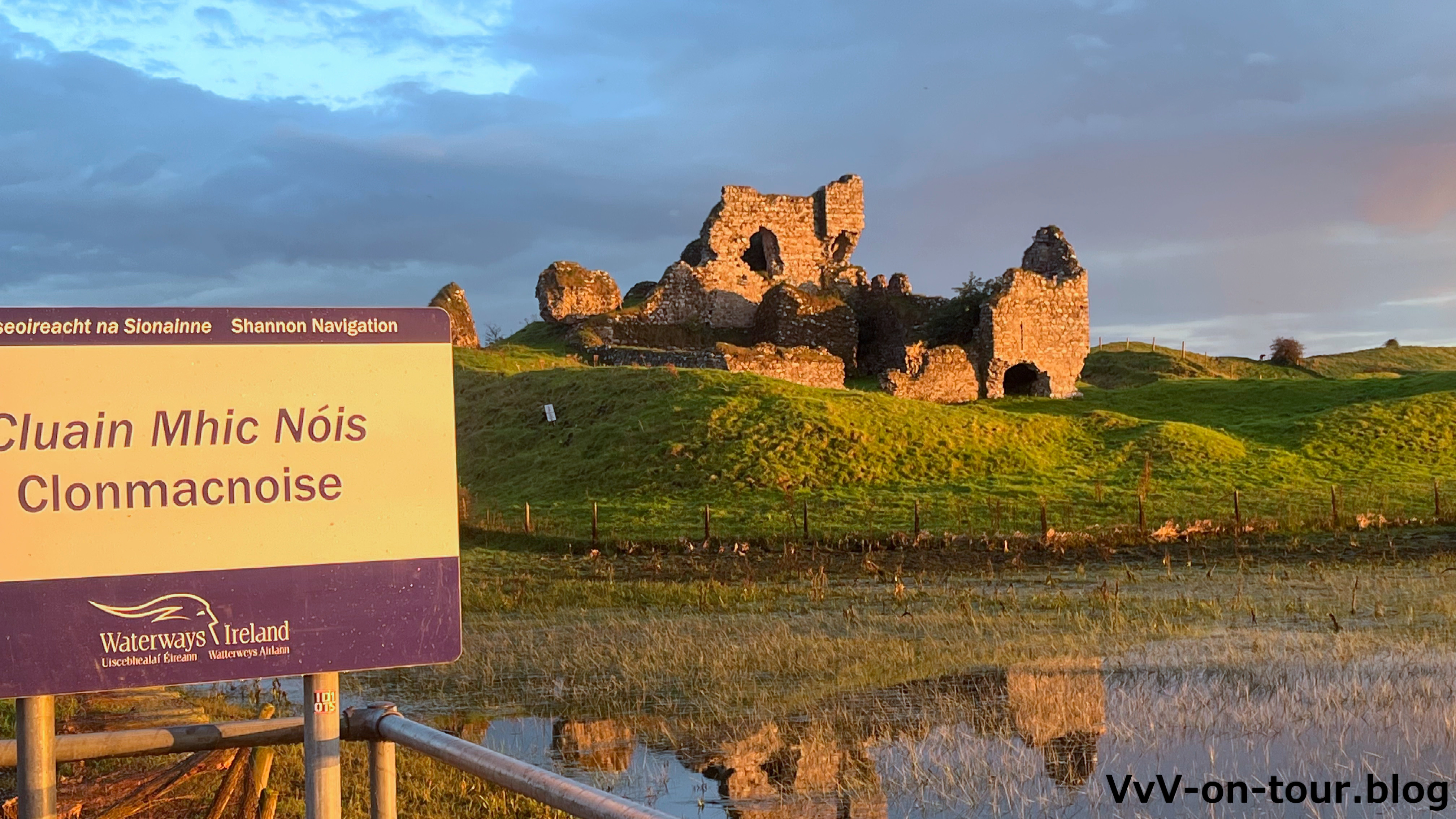 Am Anleger in Clonmacnoise befindet sich eine alte Ruine und eine alte Klosteranlage, die besichtigt wird. Papst Johannes Paul II war auch schon dort.