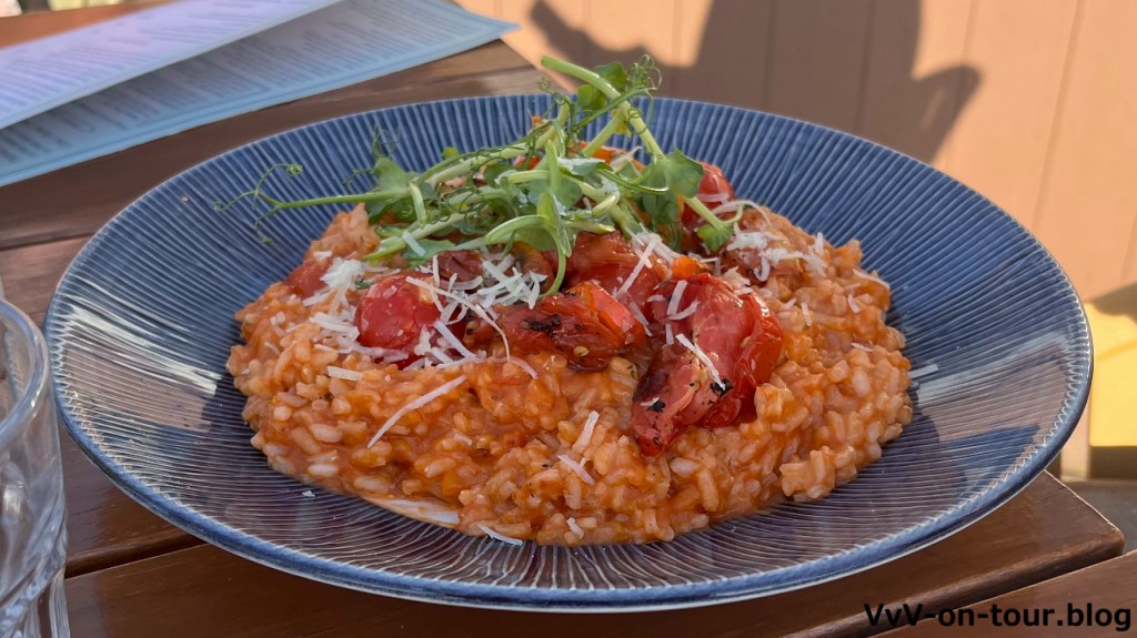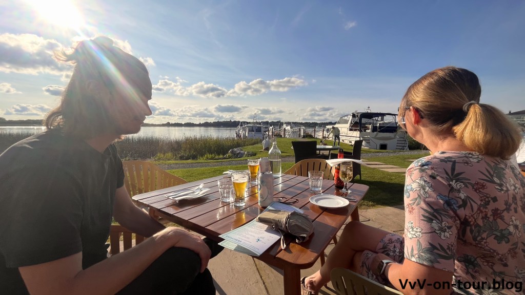 Bei herrlichem Sonnenschein sind wir unterwegs. Der Anleger gehört zum Restaurant und wir werden gleich in Empfang genommen für eine Reservierung. Das Essen ist wirklich gut und man sitzt sehr schön, um den Sonnenuntergang zu genießen.