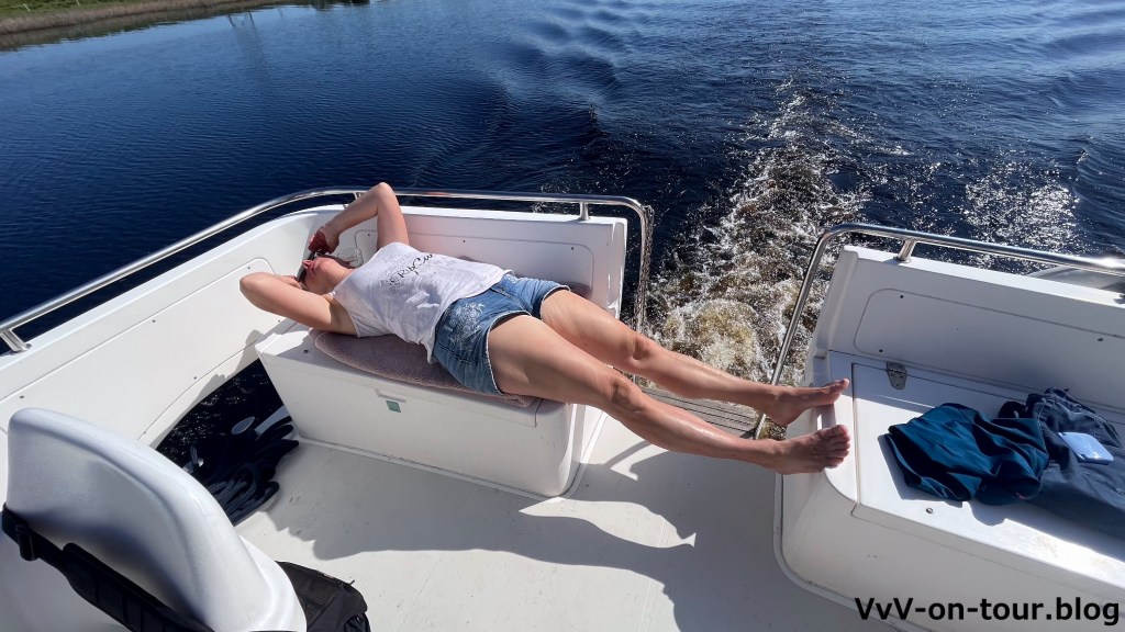 Erst eine theoretische Einweisung mit vielen Erklärungen und Hinweisen, dann ein Film mit weiteren Erläuterungen und jetzt auf das Boot. Ein junger Mann gibt praktische Hinweise, fährt ein Stück und Kai lenkt das Boot zurück an den Anleger. Prüfung bestanden.