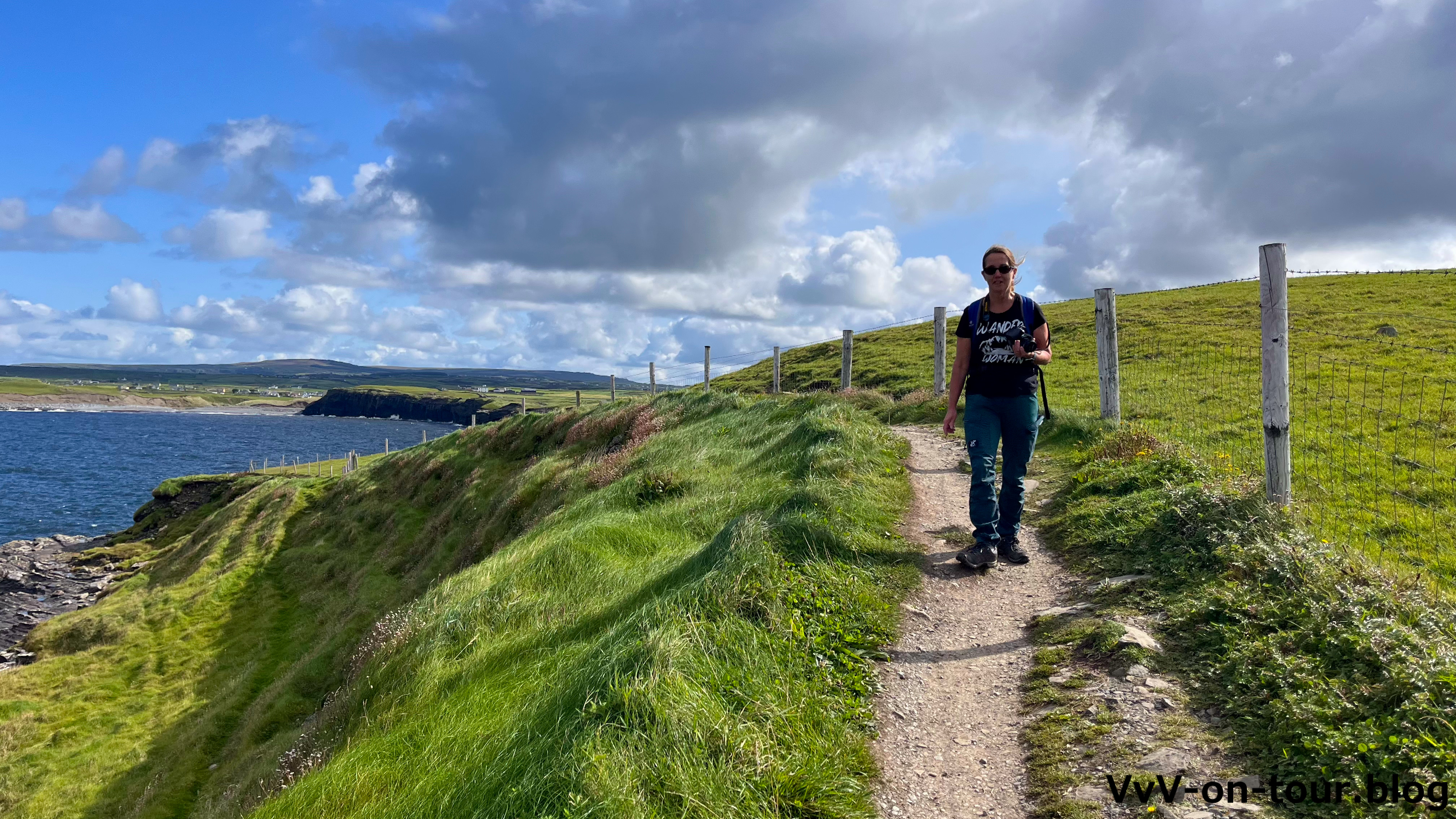 Der Weg ist wunderschön entlang der Steilküste bei schönstem Wetter – und das in Irland.