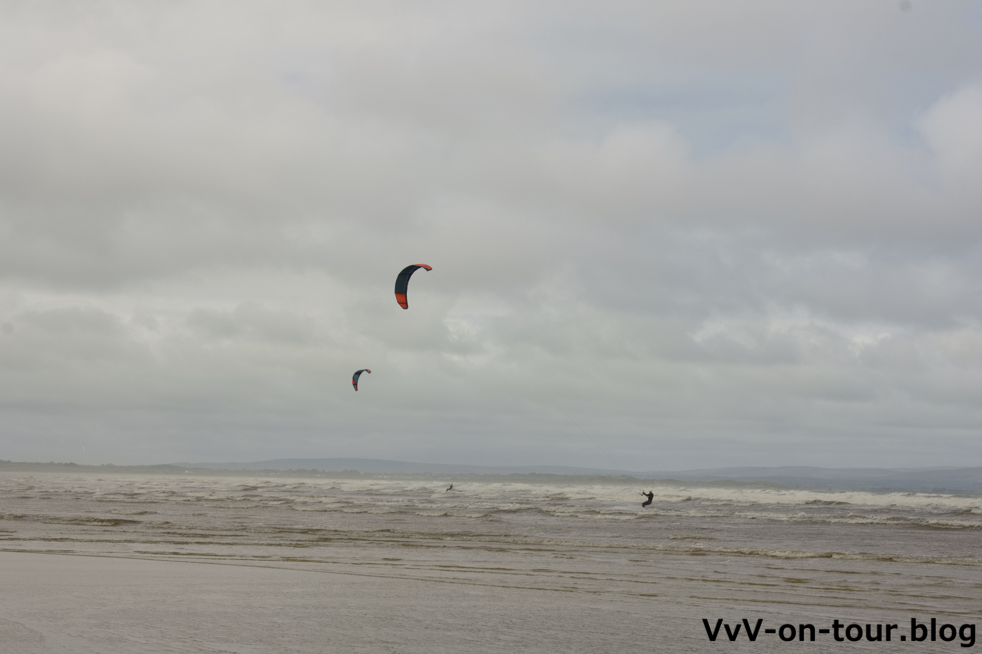 Zwischendurch immer wieder typische irische Ausblicke. Die tollen Strände am Atlantik mit ihren Kite-Surfern sind beeindruckend.