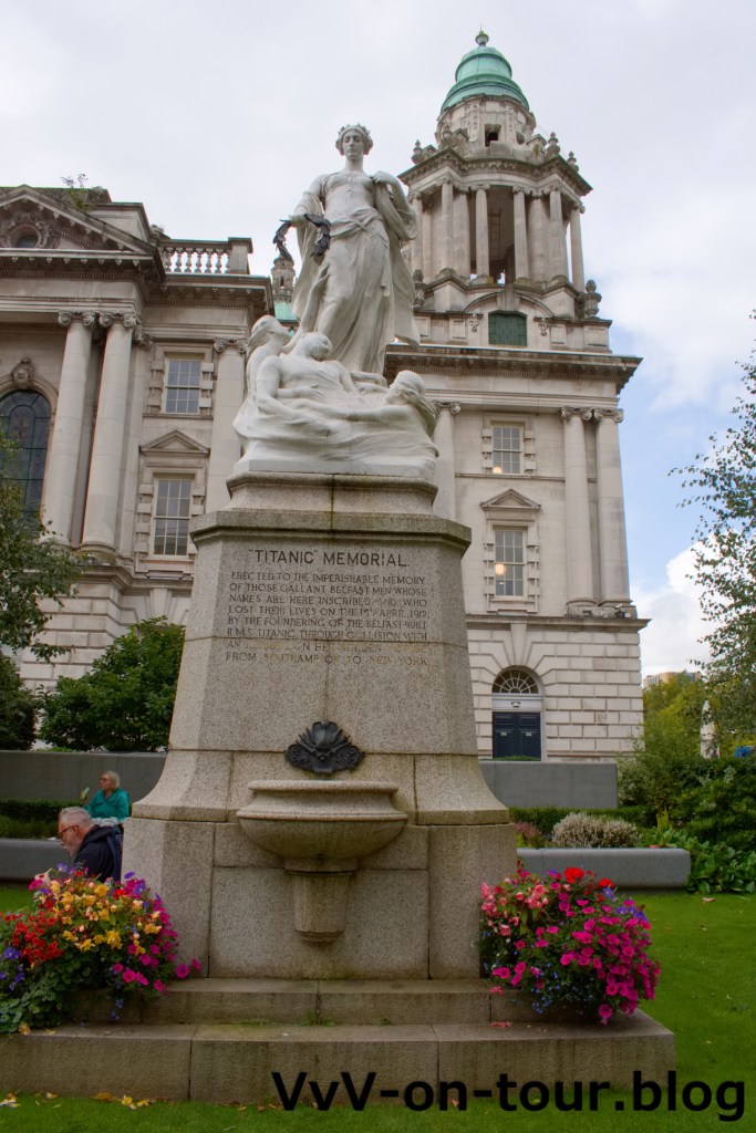 Es geht mit dem Auto in die Stadt. Geparkt wird in einem Parkhaus in der Innenstadt. Hier fällt die Wahl für eine komfortable Besichtigung auf einen Hop on – Hop off Bus. Erstmal die ganze Runde fahren, um einen Überblick zu bekommen. Vom Rathaus geht es in Richtung Titanic Quartier – Belfast ist fast eine Titanic Stadt. Das Schicksal der Titanic ist allgegenwärtig. Am Europahotel und der Oper vorbei kommt die Queens Universität und der Peace Wall.