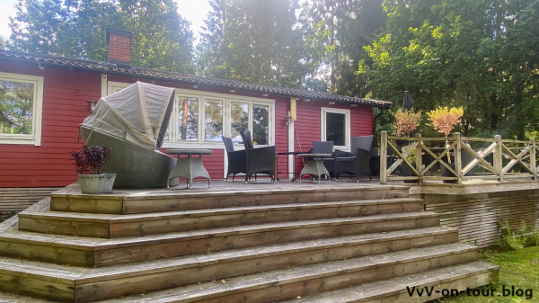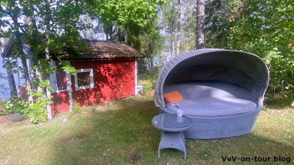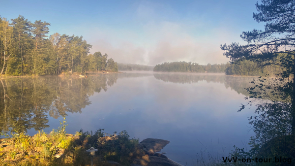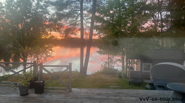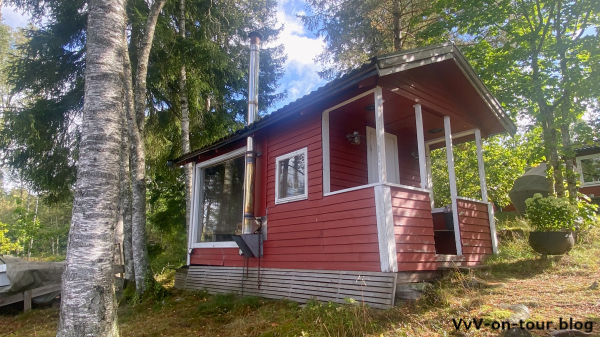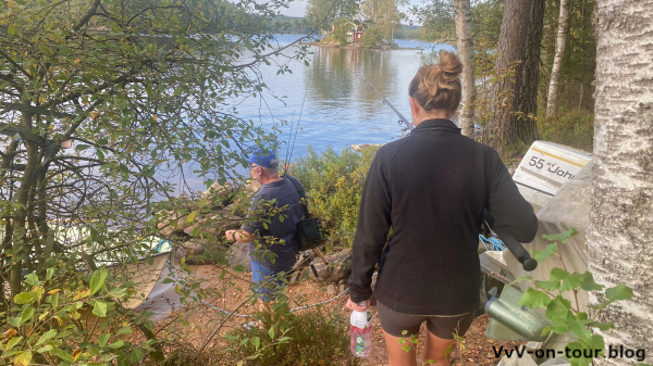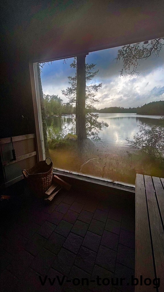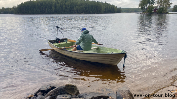 Die heutigen Aktivitäten passen zum Motto der Reise: Kai fährt mit dem Boot und der Angel los und ich erkunde die Gegend rund um das Haus. Lange hält das gute Wetter nicht an und so kommen wir Beide klatschnass von den Aktivitäten zurück. Da ruft doch die Sauna und schon kann wieder der See zum Erfrischen nach den Saunagängen genossen werden.