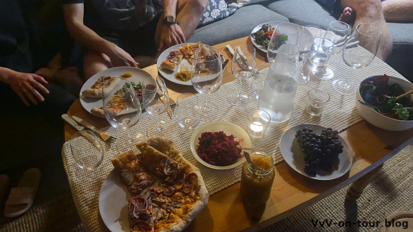 Ein sehr internationaler Abend mit vielen Köstlichkeiten. Die Weine waren auch alle lecker. Für die nächsten Abende ist noch genügend übriggeblieben.