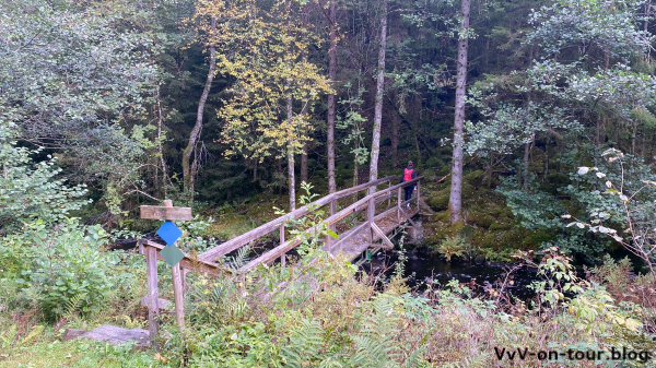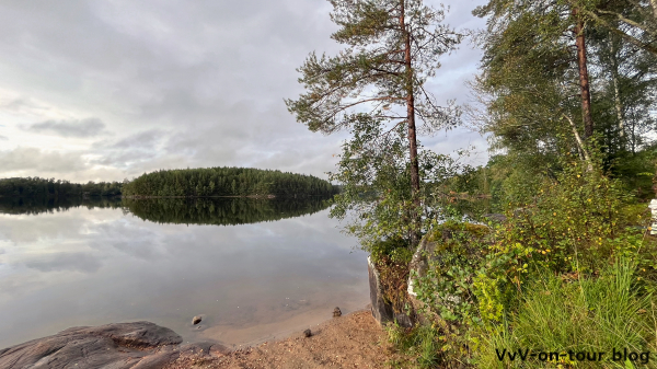 Die erste Schwierigkeit ist, einen geeigneten Parkplatz zu finden. Der Startpunkt dieser Runde auf Komoot ist etwas verwirrend. Gut parken kann man direkt in Holsljunga. Schon bald sind wir im Naturschutzgebiet mit schönen Seen.