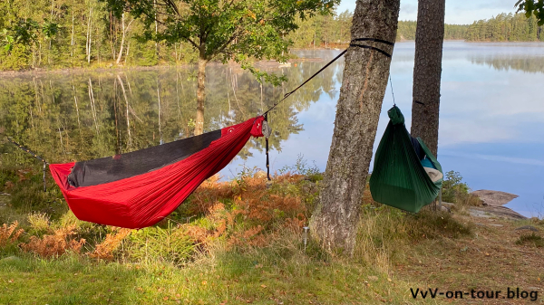 Am Nachmittag wurden aber auch die Hängematten aufgehängt. Passende Bäume gibt es hier. Schließlich wurden diese extra eingepackt, um für eine Nacht im Freien ausgerüstet zu sein. Mal sehen, ob wir uns später trauen.