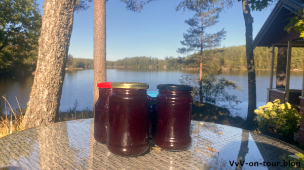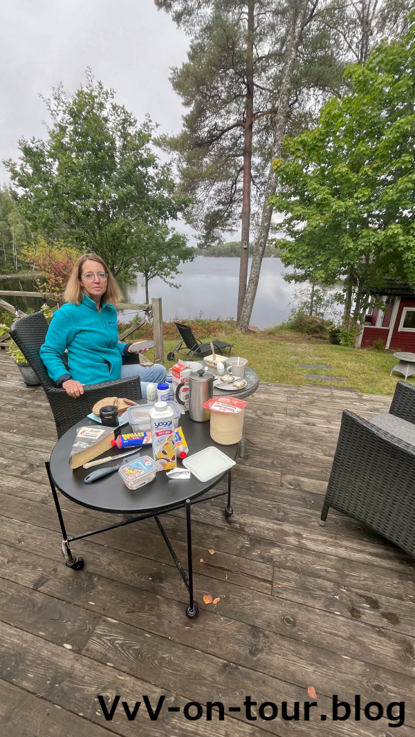 Leider regnet es immer wieder, so dass er nicht in vollen Zügen genossen werden kann. Wir Camper haben aber dennoch jeden Sonnenstrahl genutzt und draußen Kaffee getrunken. Ach so – auf dem Weg zum Haus wurde gleich ein Großeinkauf im ICA getätigt. Einige schwedische Spezialitäten – wie z. B. der Hushaltsost – müssen einfach eingekauft werden. So gibt es zum Kaffee auch gleich Zimtschnecken.