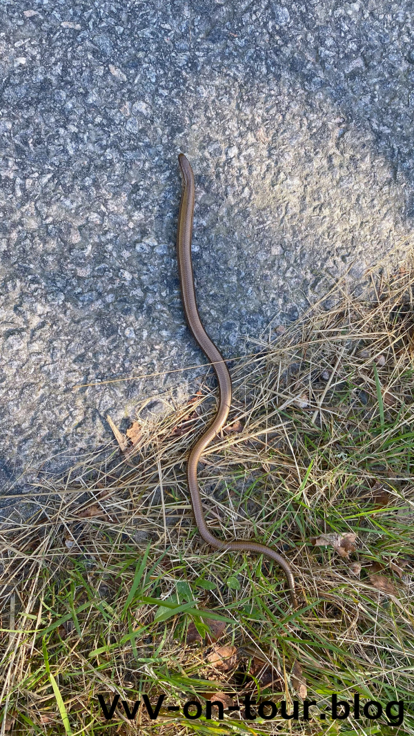Kommen an glücklichen Schweinen vorbei und entdecken Ringelnattern und freundliche Pferde. Mal wird der Weg verlassen, da er langweilige an der Straße verläuft. Laut Komoot gibt es eine Alternative durch den Wald. Für den Weg ist jedoch Pioniergeist erforderlich. Wir kämpfen uns durch. Viele Brücken werden überquert und eine alte Mine die „Grane Gruva“ wird entdeckt. Zum Ende gibt es noch kleine Trollhäuser am Wegesrand und Bäume voller rotleuchtender Äpfel.